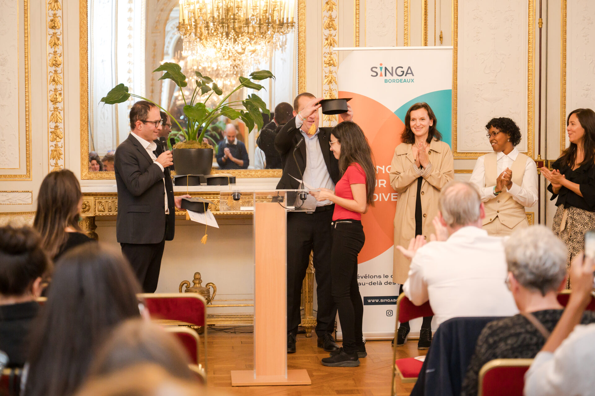 Le 15 octobre dernier, SINGA Bordeaux a investi pour la première fois les salons de l’Hôtel de Ville pour célébrer un moment fort de son histoire : la passation symbolique entre deux générations d’entrepreneur•es issu·e·s de la migration, et l’accueil de 15 nouveaux talents qui participeront, à leur tour, au dynamisme économique, culturel et social de la métropole.