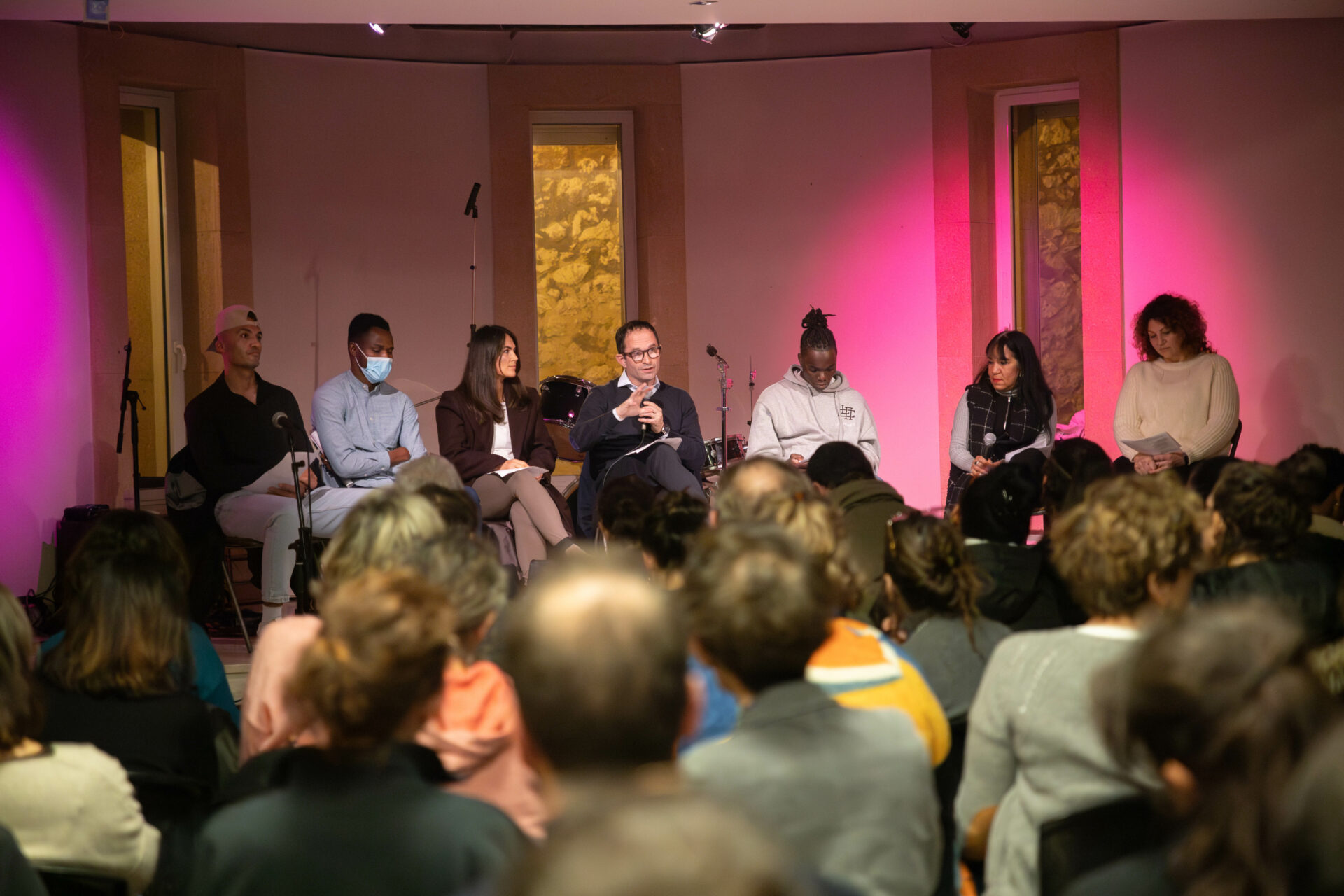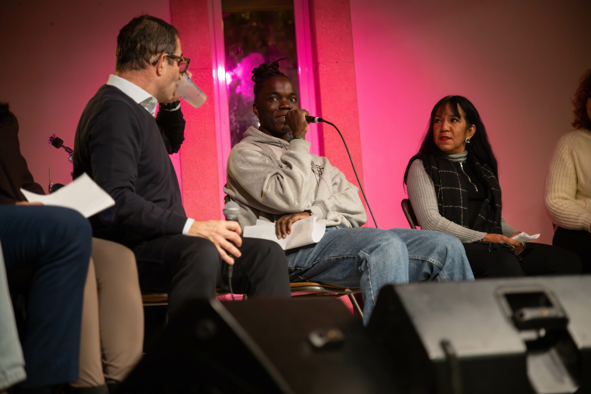 En fin d’après-midi, la table ronde « Migrations et inclusion à Marseille : paroles de concerné·es » marque un temps de pause collective. Aux côtés de Benoît Hamon, Directeur Général de SINGA Global, plusieurs personnes ayant vécu un parcours d’exil partagent leurs expériences.