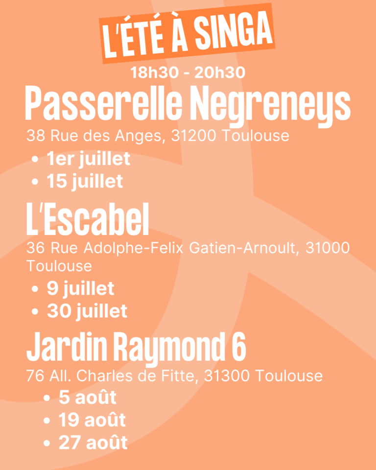 👉 Free registration, contact us by email at communautemarseille@singa.fr or by phone at 07 44 41 39 12